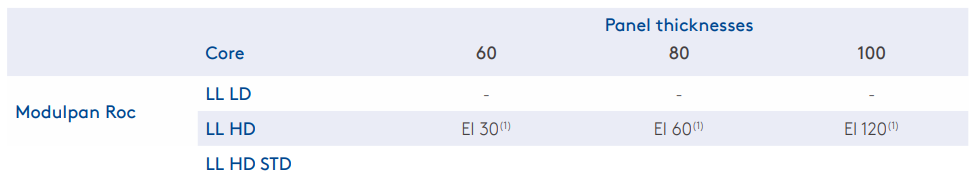 Within the range of panels, the Modulpan Roc model is designed for fire compartmentation applications applications where high fire resistance is required.