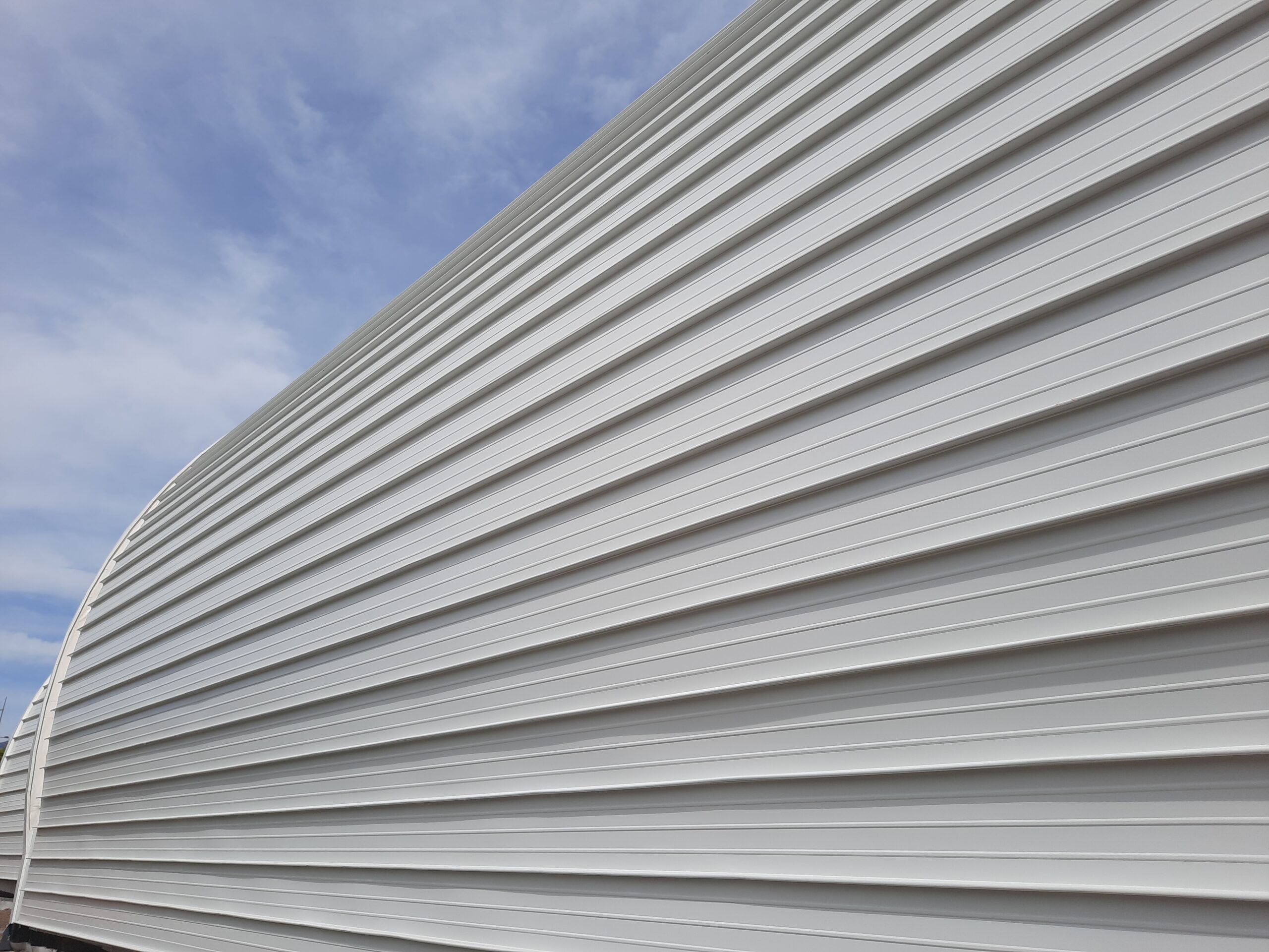 In this sports hall, the KingZip profiled louvres fit precisely into the curved façade, extending their line to the roof and creating a fluid, enveloping effect of continuity.