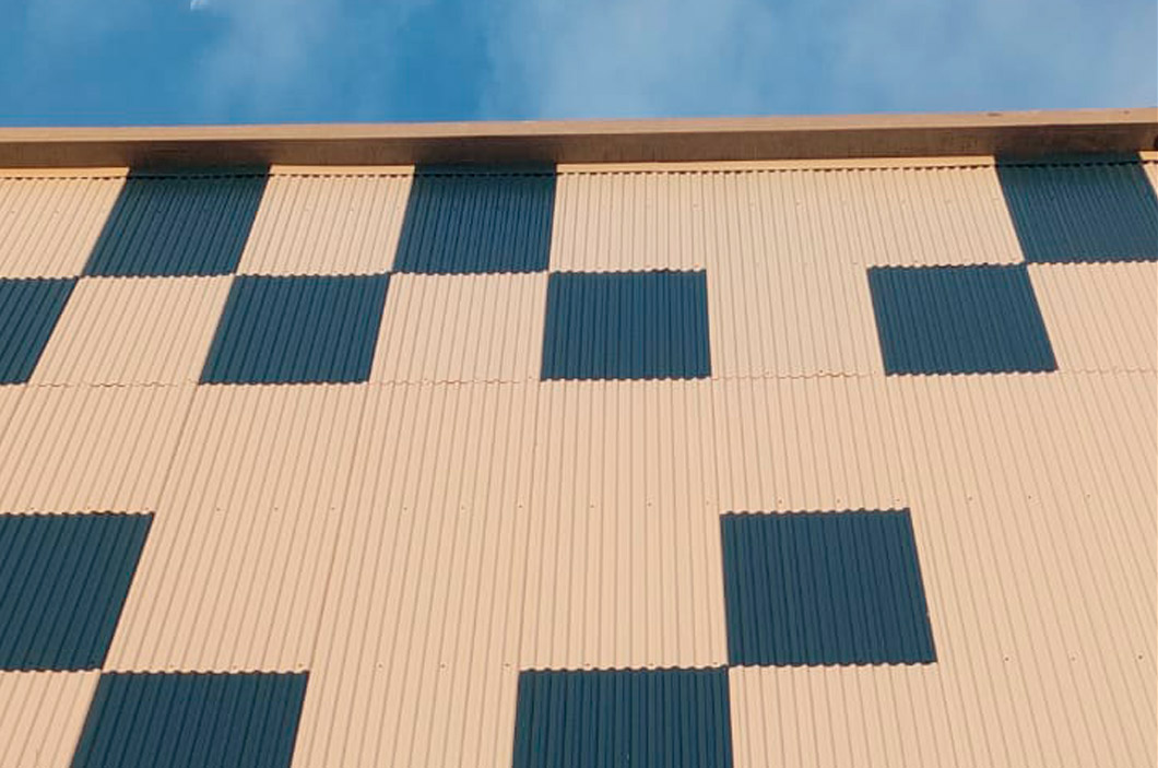 The TZ-16 profile, with an installation in gradient corporate colours, adds dynamism and depth to the side façade of this logistics building.