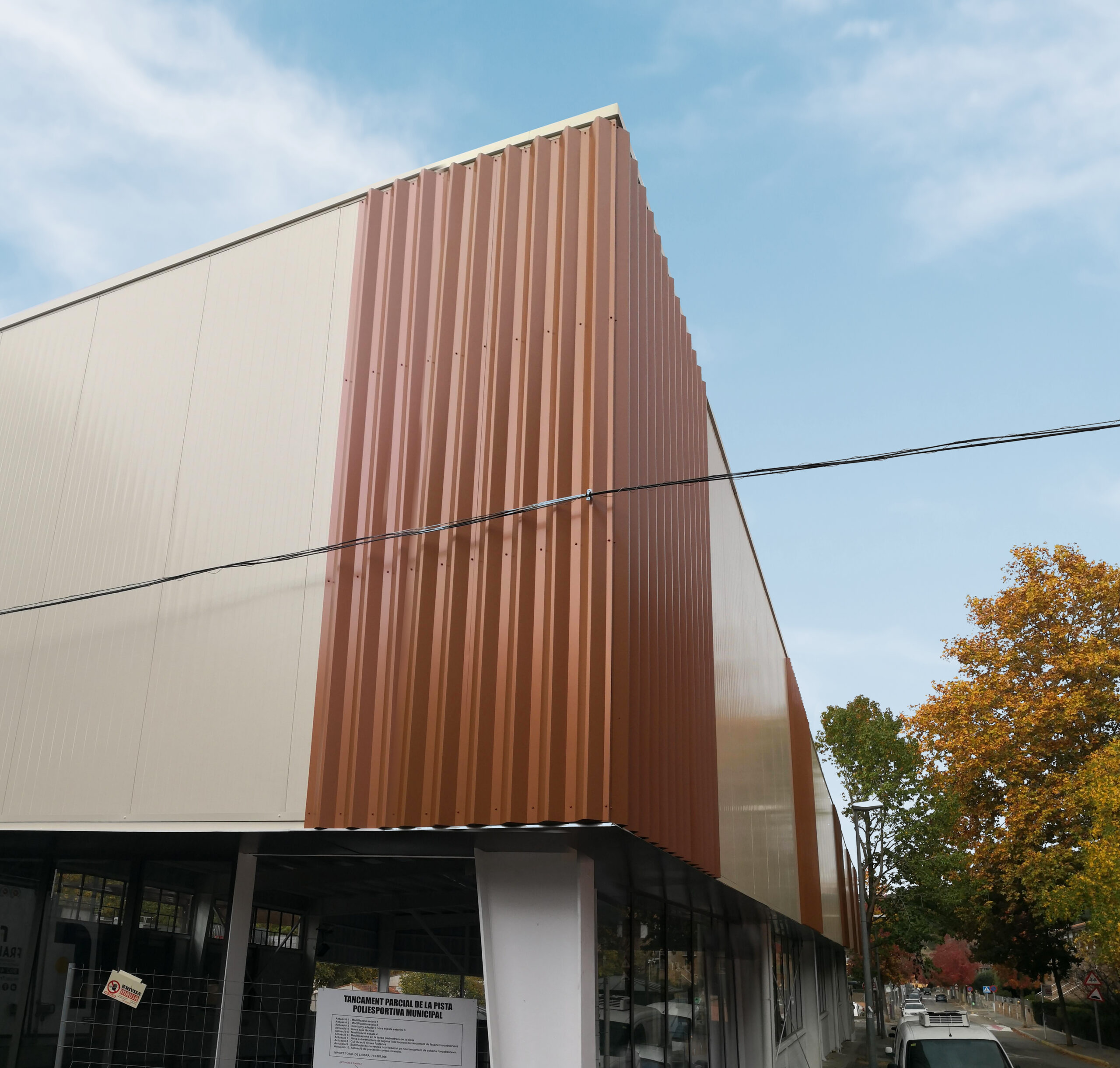 The Vallgornina municipal sports centre stands out for its personalised MyWall façade, where changing rhythms and combined geometries create a dynamic and unique image.
