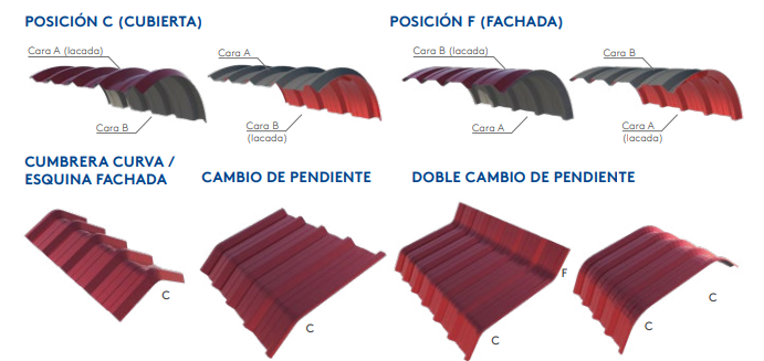 Para fachadas y cubiertas, el curvado del perfil puede aplicarse en los perfiles TZ-30, TZ-32 y TZ-40.