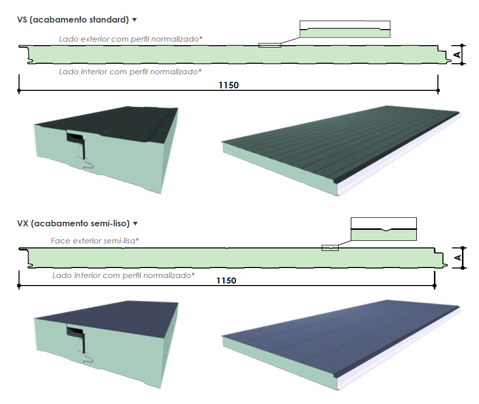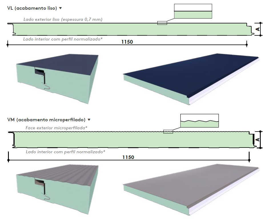 Espessura do núcleo de isolamento (A) 35 | 40 | 50 | 60 | 80 | 100 (mm)